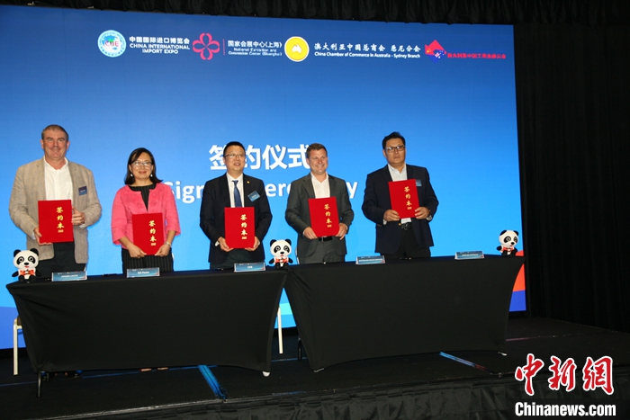 當(dāng)?shù)貢r(shí)間1月30日,第七屆中國國際進(jìn)口博覽會(huì)推介會(huì)在澳大利亞悉尼舉行。部分澳大利亞企業(yè)確認(rèn)參加第七屆進(jìn)博會(huì)并簽訂協(xié)議?!?中新社記者 顧時(shí)宏 攝