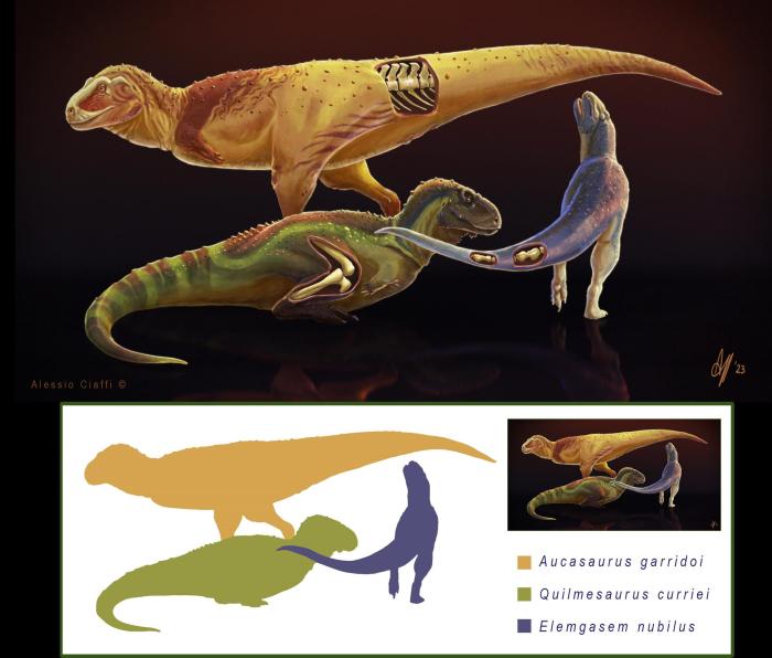 在本項研究中,論文第一作者兼通訊作者、香港中文大學和阿根廷國立內(nèi)格羅河大學Mattia A. Baiano與同事及合作者一起,利用計算機斷層掃描(CT)和骨骼組織學分析,研究了3組獸腳類恐龍的化石遺骸——分別來自加氏奧卡龍、迷霧嚙王龍和柯氏基爾梅龍,它們均生活在白堊紀晚期(距今約9000萬至7000萬年前)的南美洲。3個物種均為阿貝力龍科的獸腳類恐龍,這類恐龍的典型特征是前肢極短,頭骨深且有力并常生有冠、角等骨質(zhì)裝飾部位。