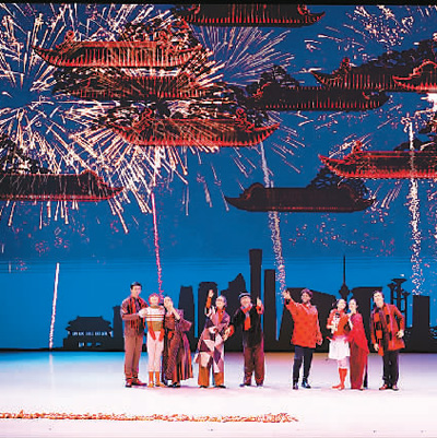 舞臺上,紅彤彤的燈籠、喜慶的春聯(lián)、熱鬧的廟會(huì)奏響了中國農(nóng)歷新年的序曲;“團(tuán)團(tuán)”和“圓圓”家的年夜飯彰顯了中國禮儀之邦的待客之道、尊老愛幼的傳統(tǒng)美德,一張全家福更傳達(dá)了中國人對親情的重視和對團(tuán)圓的向往;“胡桃夾子”大戰(zhàn)“年”獸,則充滿童趣地演繹了“過年”的傳說;而當(dāng)寓意吉祥的仙鶴在蒼勁的松樹下迎著朝陽翩翩起舞,西方芭蕾藝術(shù)在中國文化意象中煥發(fā)出了美妙的東方神韻;扇子舞、絲綢舞、風(fēng)箏舞、陀螺舞……一個(gè)個(gè)頗具中國元素的慶典場面讓阿聯(lián)酋觀眾游歷在瑰麗多姿的中國傳統(tǒng)文化中。