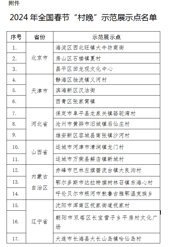 2024年全國春節(jié)“村晚”示范展示點名單