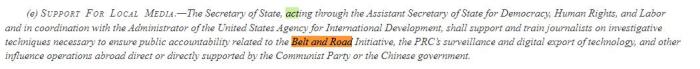 不僅如此,在法案的第136條,美國還專門制定了針對“一帶一路”倡議的抹黑策略,主要就是培訓(xùn)一大批反華記者。