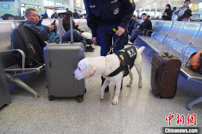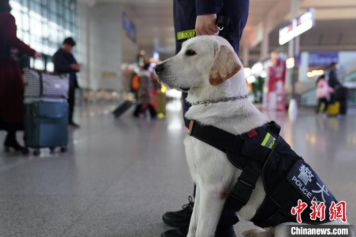 中新網(wǎng)南寧2月5日電 題:“見習”警犬“斯諾”的首個春運:抵御美食誘惑方“過關”
