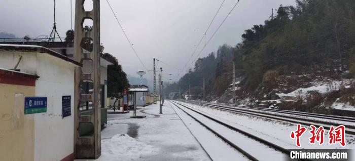 風雪中的官壩站。懷化供電段供圖
