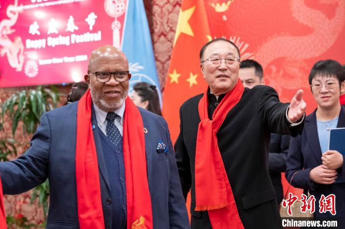 當(dāng)晚,中國常駐聯(lián)合國代表團在紐約駐地舉行龍年新春招待會。
