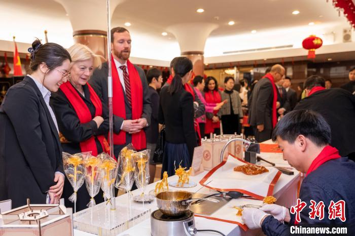 招待會上,來自浙江省的工藝美術(shù)大師和非遺傳承人精心準(zhǔn)備了各具特色的中國非遺和年俗互動項目,來自美國西北大學(xué)的音樂家演唱了激情澎湃的《為祖國干杯》和熱鬧喜慶的《龍船調(diào)》。來賓們紛紛表示,期待新的一年繼續(xù)與中國攜手努力,建設(shè)更美好的世界。(完)
