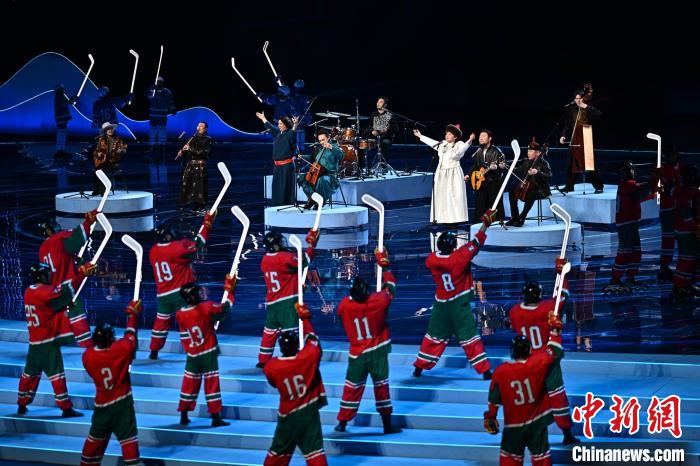 2月17日,第十四屆全國(guó)冬季運(yùn)動(dòng)會(huì)開(kāi)幕式在內(nèi)蒙古呼倫貝爾市海拉爾區(qū)內(nèi)蒙古冰上運(yùn)動(dòng)訓(xùn)練中心舉行。圖為開(kāi)幕式現(xiàn)場(chǎng)?!≈行律缬浾?崔楠 攝