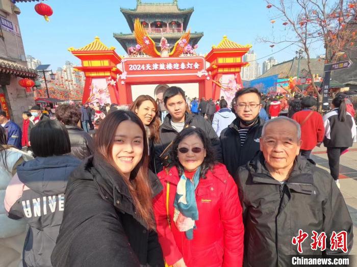 春節(jié)假期,施季萱一家到天津觀賞鼓樓迎春燈會。(受訪者供圖)