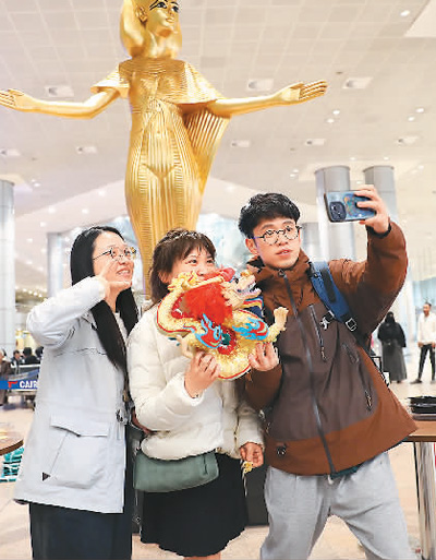 埃及是中國游客春節(jié)假期出境游的主要目的地之一。2月10日,開羅國際機場舉辦“歡迎中國游客來埃及過大年”儀式,迎接當(dāng)天抵達的300余名中國游客?!敖鹱炙?、獅身人面像、埃及博物館、卡爾納克神廟……今年來埃及的中國游客尤其多,幾乎每個景點都能看到中國游客的身影?!卑<皩?dǎo)游哈迪布告訴記者,春節(jié)是他最忙碌的時期。