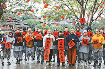 春節(jié)期間,廣西壯族自治區(qū)桂林市靈川縣九屋鎮(zhèn)西嶺山莊迎來一批外國(guó)客人,他們一起寫福字、磨豆腐、舂糍粑、釀圓子……沉浸式體驗(yàn)中國(guó)傳統(tǒng)民俗,現(xiàn)場(chǎng)歡聲笑語(yǔ)不斷。