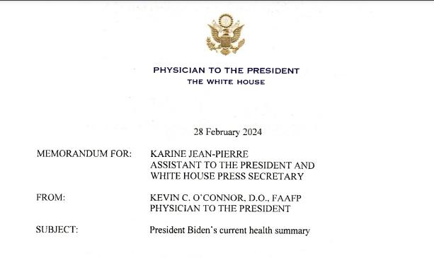 文件還稱,拜登“感覺良好,這次體檢沒有發(fā)現(xiàn)新的問題。”