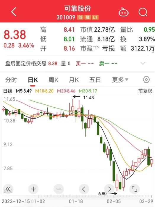 29日,可靠股份日K走勢圖。