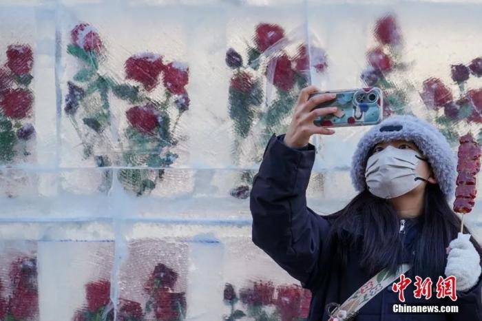 資料圖:哈爾濱中華巴洛克歷史文化街區(qū),冰玫瑰墻吸引游客拍照。趙宇航 攝