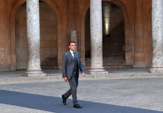 2023年10月5日,在西班牙格拉納達,前來參加第三屆歐洲政治共同體領(lǐng)導(dǎo)人會議的法國總統(tǒng)馬克龍抵達阿爾罕布拉宮。新華社記者連漪攝