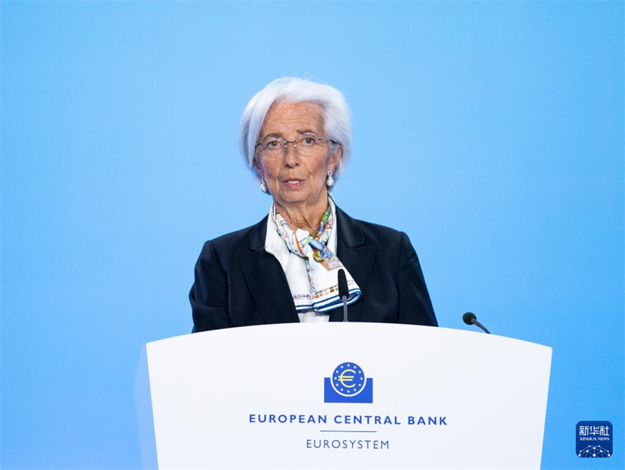 3月7日,歐洲中央銀行行長拉加德在德國法蘭克福歐洲中央銀行總部出席新聞發(fā)布會(huì)。新華社記者 張帆 攝