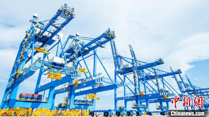 青島港自動(dòng)化碼頭,振華重工建造的自動(dòng)化岸橋。 振華重工供圖