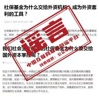 中新網(wǎng)3月18日電 據(jù)“互聯(lián)網(wǎng)聯(lián)合辟謠平臺(tái)”微信公眾號(hào)消息,近段時(shí)間以來,有少數(shù)網(wǎng)絡(luò)自媒體發(fā)布視頻稱,我國社會(huì)保險(xiǎn)基金“幾乎全部交給外資機(jī)構(gòu)管理”,且被用于“買賣A股”,質(zhì)疑社?;鸪蔀椤巴赓Y套利的工具”。經(jīng)中國互聯(lián)網(wǎng)聯(lián)合辟謠平臺(tái)向有關(guān)主管部門核實(shí)查證,前述言論均為不實(shí)信息。