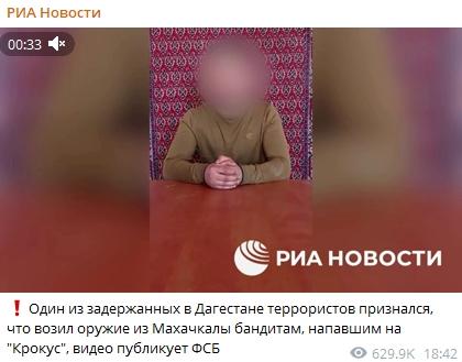 “我給那些襲擊了莫斯科‘克羅庫斯城’音樂廳的人帶去了武器。武器是我從馬哈奇卡拉帶到梅季希的。”其中一人表示。