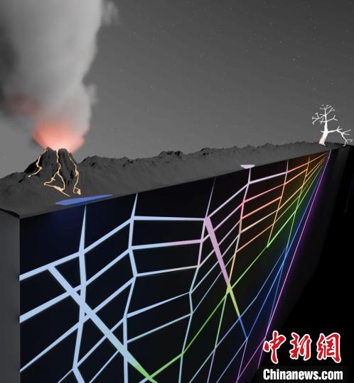 本次研究示意圖:由相互連接的巖石裂縫組成的地下網(wǎng)絡,在熱流的推動下積累并富集了生命起源前的化合物,從而促進了生命出現(xiàn)的早期化學過程(圖片來自Christof B. Mast)。施普林格·自然/供圖