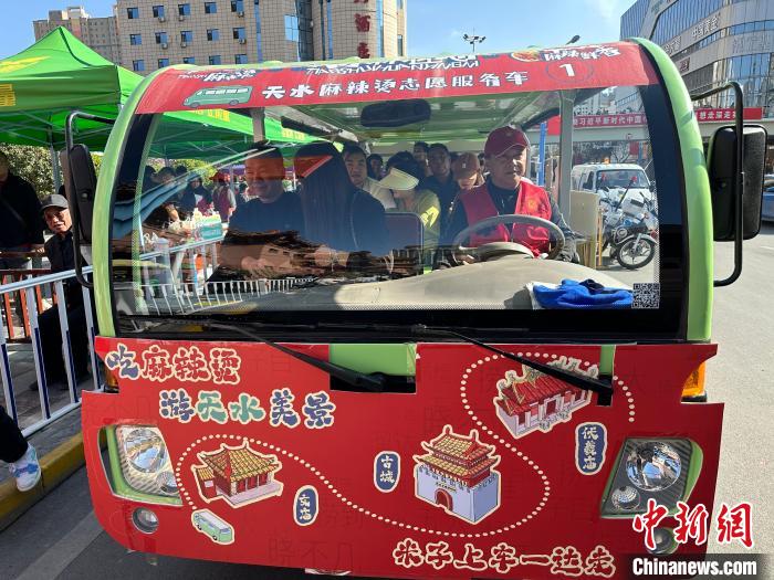 3月25日,游客乘坐的天水麻辣燙志愿服務(wù)車(chē)?!〈魑牟?攝