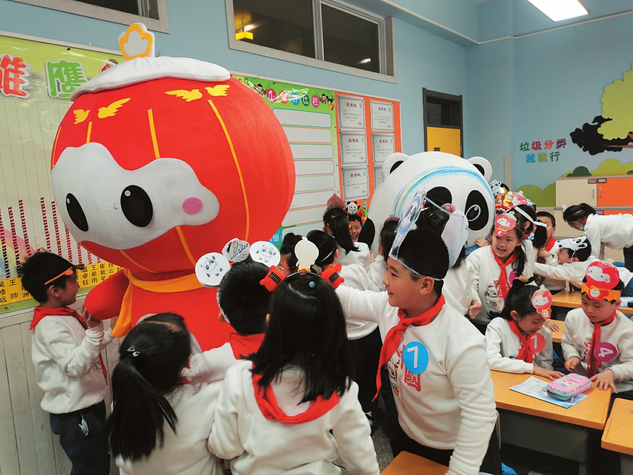 1月4日,太原市新建路小學(xué)內(nèi),冬奧會(huì)吉祥物“冰墩墩”“雪容融”正在與孩子們互動(dòng)。據(jù)了解,當(dāng)日該校開(kāi)啟“樂(lè)考迎冬奧 一起向未來(lái)”一二年級(jí)樂(lè)考活動(dòng)。通過(guò)“冬奧”禮儀、“冬奧”吉祥物我來(lái)做等項(xiàng)目測(cè)評(píng)內(nèi)容,采用游園走班式樂(lè)考,讓孩子們?cè)跇?lè)考中走近“冬奧會(huì)”、了解“冬奧會(huì)”。(記者阮洋攝)
