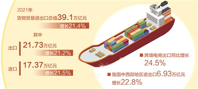 “2021年是黨和國家歷史上具有里程碑意義的一年。面對全球新冠肺炎疫情帶來的嚴重沖擊,我國外貿進出口依然展現了強勁的韌性,在困難多、挑戰(zhàn)大的情況下交出了一份亮眼的成績單。”李魁文說。