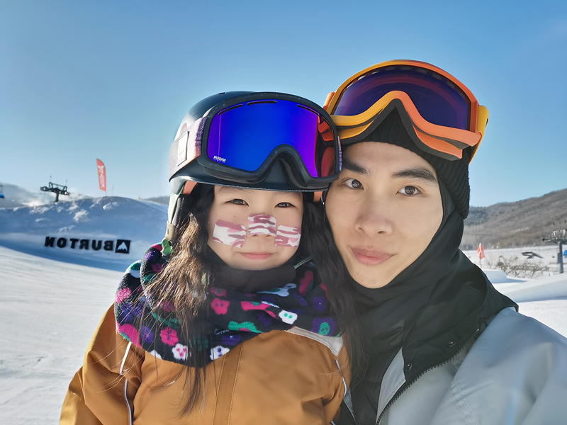 “一開始只是帶著孩子來雪場(chǎng)感受一下氛圍,當(dāng)時(shí)的萱萱還只會(huì)爬,我給她裹上厚厚的羽絨服,試著把她放在雪地里爬,發(fā)現(xiàn)她一點(diǎn)都不害怕,反而玩得很開心?!苯鸨虮蚧貞浀?,第一次抱著萱萱滑雪時(shí),他把女兒摟在懷里,帶她感受了一把從山上往下滑的體驗(yàn),小家伙全程并沒有害怕不安,反而表現(xiàn)得很興奮。