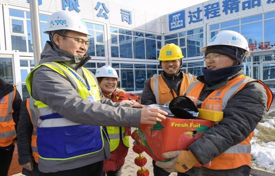 “項目職工和工友們都很支持國家‘就地過年’號召,愿意堅守崗位,主動放棄與家人團聚的機會,春節(jié)期間,我們一定要做好項目留守人員生活保障工作,讓大家過個幸福、溫暖的春節(jié)?!敝薪ㄖ垡还緯?、總經理張永敏表示。