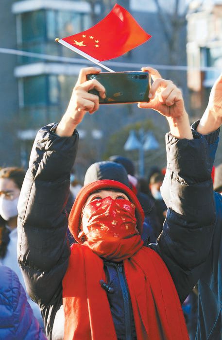 昨天,“重啟”的百旺茉莉園一期充滿(mǎn)了新年的喜慶,在小區(qū)南門(mén)廣場(chǎng)處,孩子們和居民們一起高唱《歌唱祖國(guó)》《明天會(huì)更好》,表達(dá)感激和喜悅之情。本報(bào)記者 王海欣攝