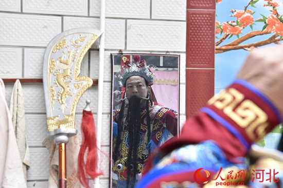 涉縣賽戲代表性傳承人湯香平給演員化妝。 李獻(xiàn)海攝