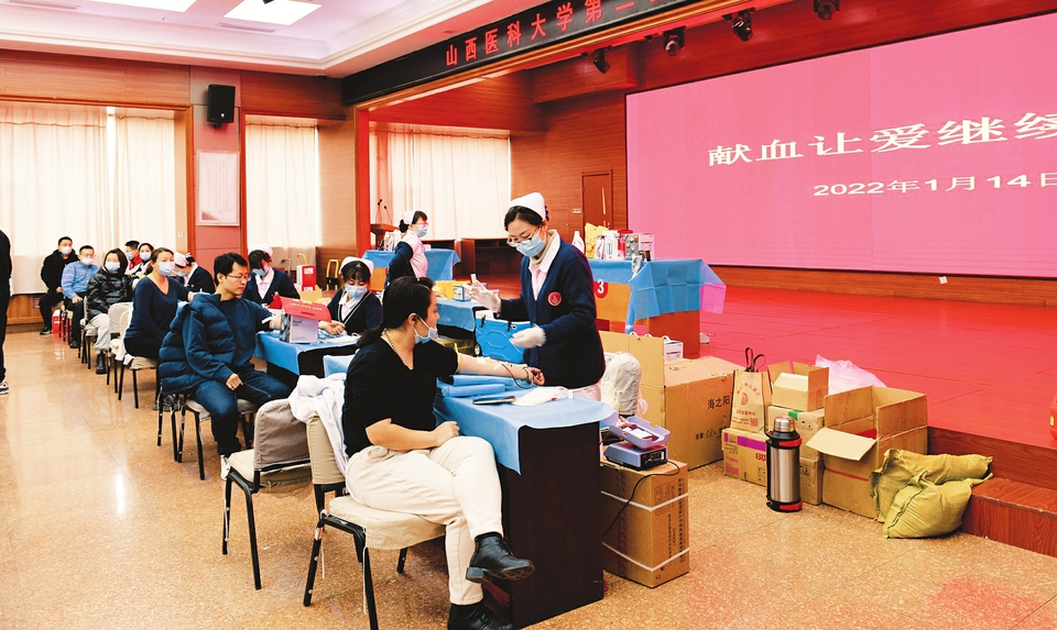 近日,山西醫(yī)科大學(xué)第二醫(yī)院一年一次的義務(wù)獻(xiàn)血“獻(xiàn)血讓愛繼續(xù)跳動”公益活動在該院影像樓進(jìn)行,醫(yī)務(wù)人員、職能部門和后勤工作人員共264人參與。大家依次填表、體檢、化驗(yàn)、采血,積極獻(xiàn)出一份愛心,以實(shí)際行動踐行對生命的關(guān)愛,體現(xiàn)了強(qiáng)烈的社會責(zé)任感。(周慧芳 孟亮圖/文)