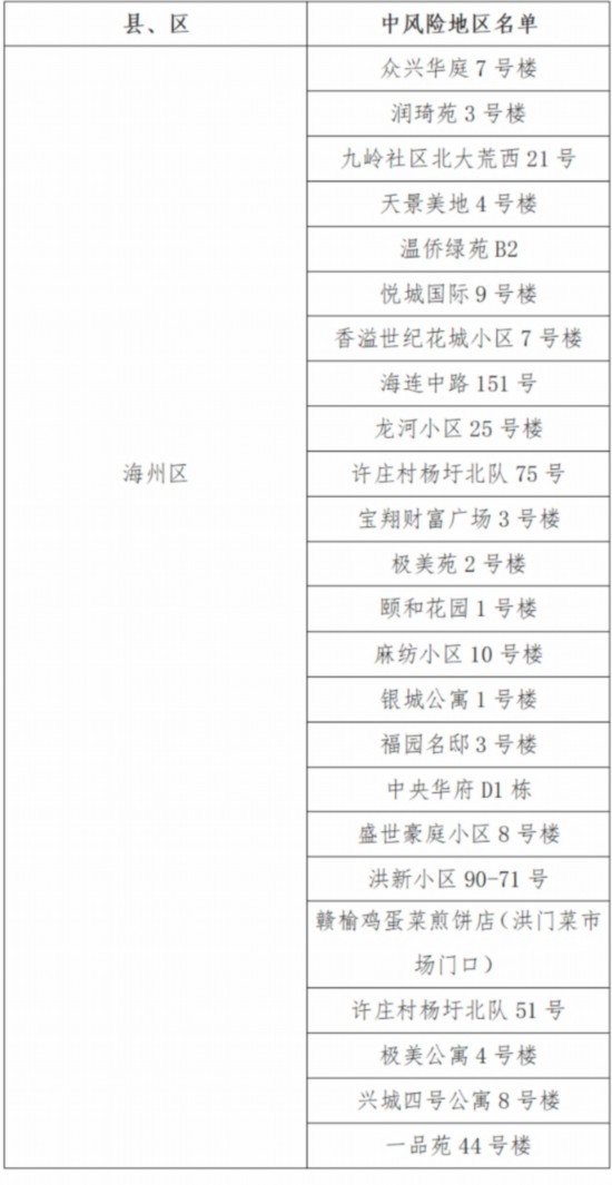 連云港市24個中風(fēng)險地區(qū)詳細(xì)名單