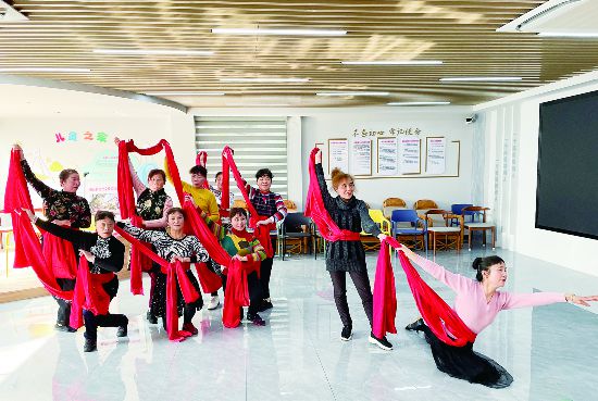 3月10日,金華開發(fā)區(qū)江南街道南苑社區(qū)新時(shí)代文明實(shí)踐站一樓大廳,南苑社區(qū)藝術(shù)團(tuán)“幸福里”舞蹈隊(duì)的阿姨正在排練舞蹈。今年初,南苑社區(qū)新時(shí)代文明實(shí)踐站重新啟用,老年人可以在這里看書、聽?wèi)颉裎幕钬S富多彩。(時(shí)寬兵)