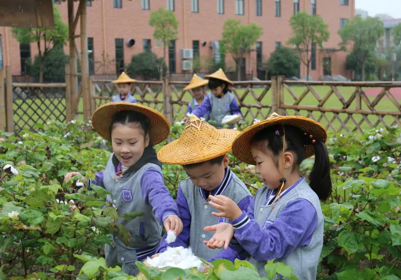 正值課后服務(wù)時間,奉賢區(qū)育賢小學的“樂耕園”里,迎來了一群可愛的小朋友。他們有的興致勃勃地觀察植物,有的正給菜地除草,好一派熱鬧景象?!白詈玫膭趧咏逃褪且尯⒆尤趧印!睂W校根據(jù)農(nóng)作物的生長周期,精心設(shè)計季節(jié)性內(nèi)容,并邀請有種植經(jīng)驗的家長參與其中,營造課后服務(wù)中親子互動的空間。如何才能讓水稻長得更好,如何讓棉花長得又大又白,讓向日葵一直露著笑臉?孩子們和家長共同探究這些問題。學校將勞動教育作為主要抓手,以課后服務(wù)為載體,進行德智體美勞“五育融合”,打開了課后服務(wù)的新天地。