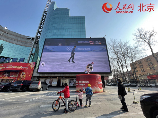 布設(shè)在北京街頭的8K超高清戶外大屏。人民網(wǎng) 董兆瑞攝