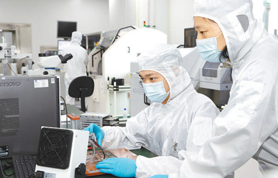 研究人員對柔性電子封裝線電性功能進行測試。浙江清華長三角研究院供圖