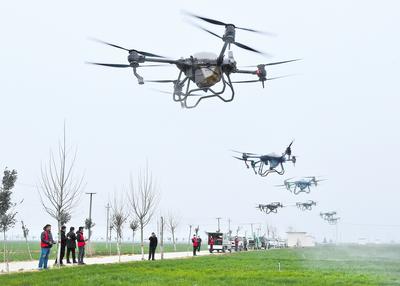石家莊市欒城區(qū)恒豐種植專業(yè)合作社的麥田里,麥苗從地里冒出來一拃左右,十幾臺(tái)大型植保無人機(jī)和智能化農(nóng)機(jī)正在對(duì)麥田進(jìn)行水肥綜合治理作業(yè)。
