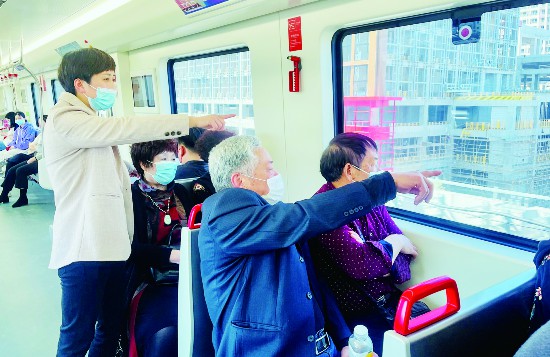 近日,金華開發(fā)區(qū)西關街道寺后皇社區(qū)專職網格員詹月蘭陪同章炳富等退役軍人一起乘坐軌道交通,感受城市新變化。章炳富說,這幾年金華的變化非常大,在新的歷史時期要為建設家鄉(xiāng)貢獻自己的力量。(李建林)