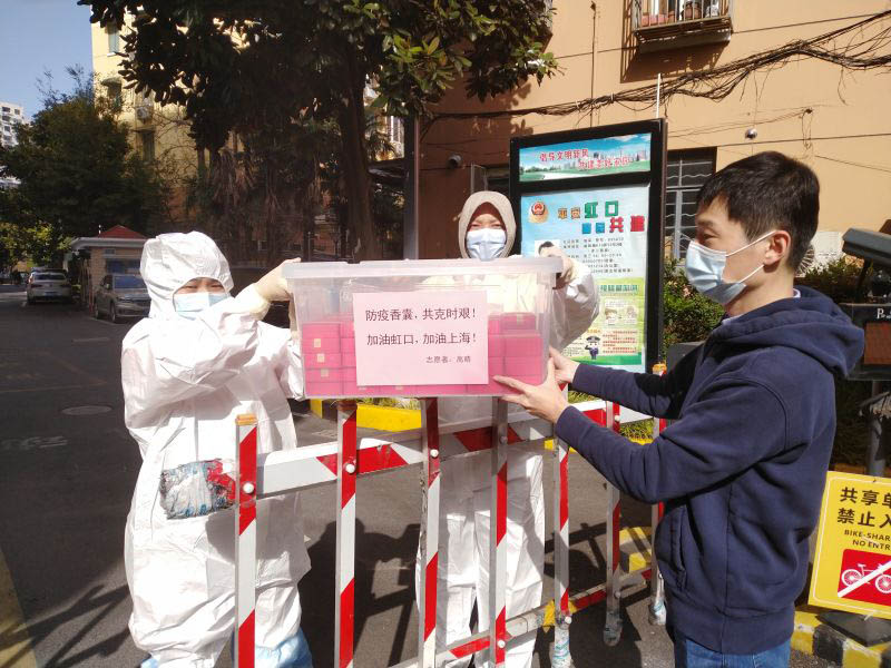 人民網(wǎng)上海3月31日電 (唐小麗、馬作鵬)“這些避疫香囊是我的一點(diǎn)心意。”3月30日下午,高晴將她自制的100多只避疫香囊,轉(zhuǎn)送給虹口區(qū)曲陽路街道赤峰二小區(qū)正在抗疫的志愿者們。