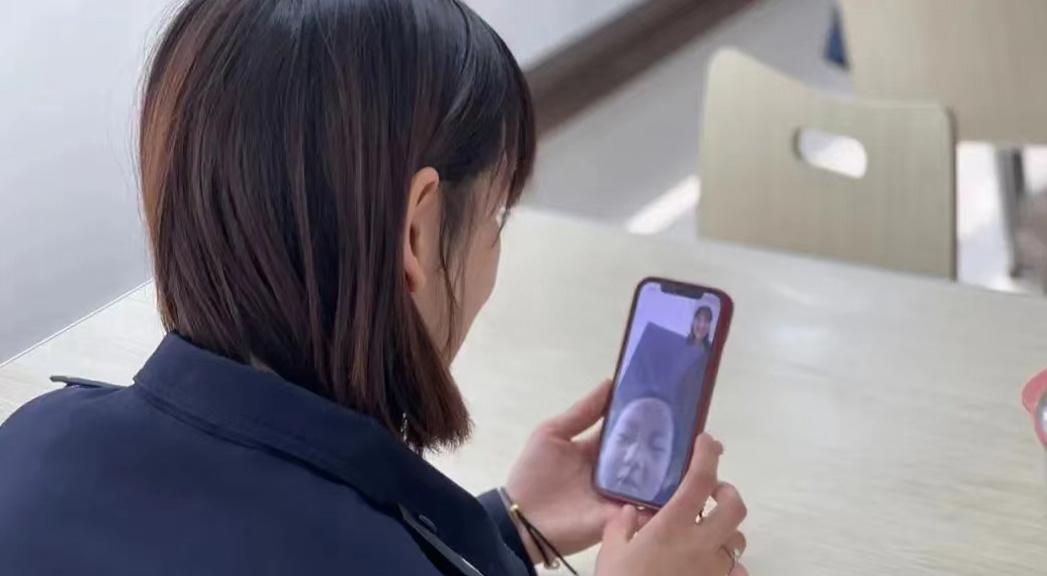 接到參加疫情防控任務(wù)的命令后,張思遙吃住在單位,休息時才有時間跟孩子視頻。 邢臺市公安局供圖