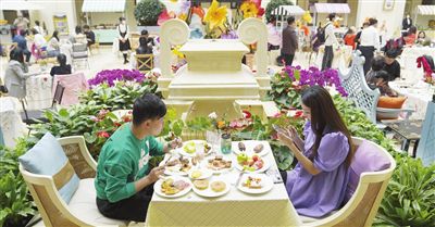 隨著復(fù)工復(fù)產(chǎn)的腳步加快,天津市各大商圈在做好疫情防控的前提下,漸漸恢復(fù)了“煙火氣”。圖為人們在一家花園式餐廳中品嘗精致美食。記者 孫立偉 攝