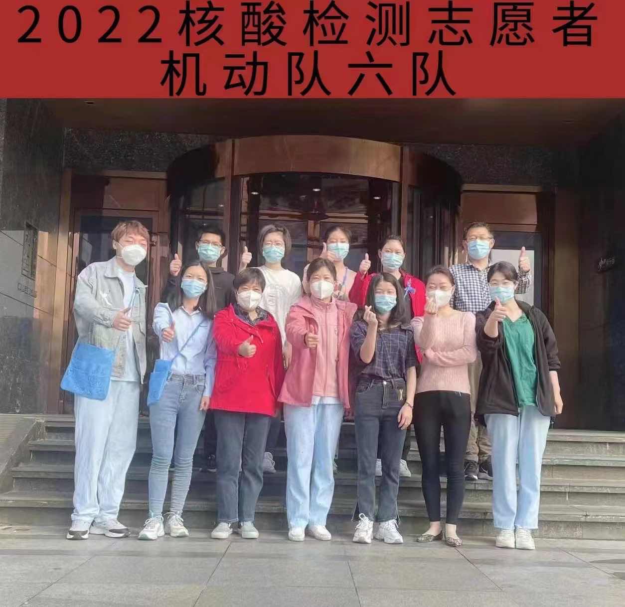 她是在職的牙科醫(yī)生。“我本來在社區(qū)當(dāng)志愿者,維持秩序,送送菜啥的??吹胶怂岵蓸诱心剂?,我興奮了!”她仍津津樂道:“4月12號,看到同事在群里發(fā)招募;4月13號,就接到招募辦電話,問我有什么要求,我說聽從安排;當(dāng)天晚上就被大巴接走了,到了集中點,分配在核酸檢測志愿者機動隊六隊。”