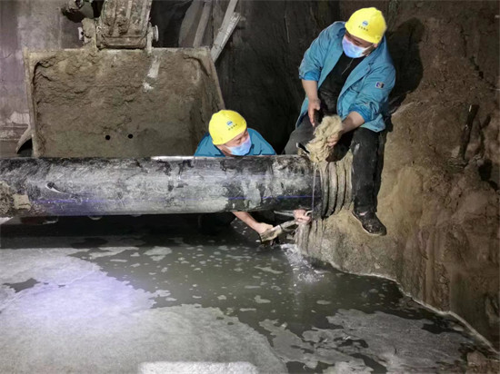 工作人員緊急搶修雨水管道。 保定市供水有限公司供圖