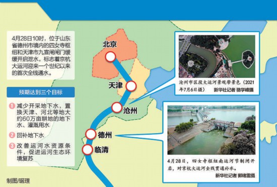 水挽京津冀 運(yùn)河綻新顏:京杭大運(yùn)河百年來首次全線通水