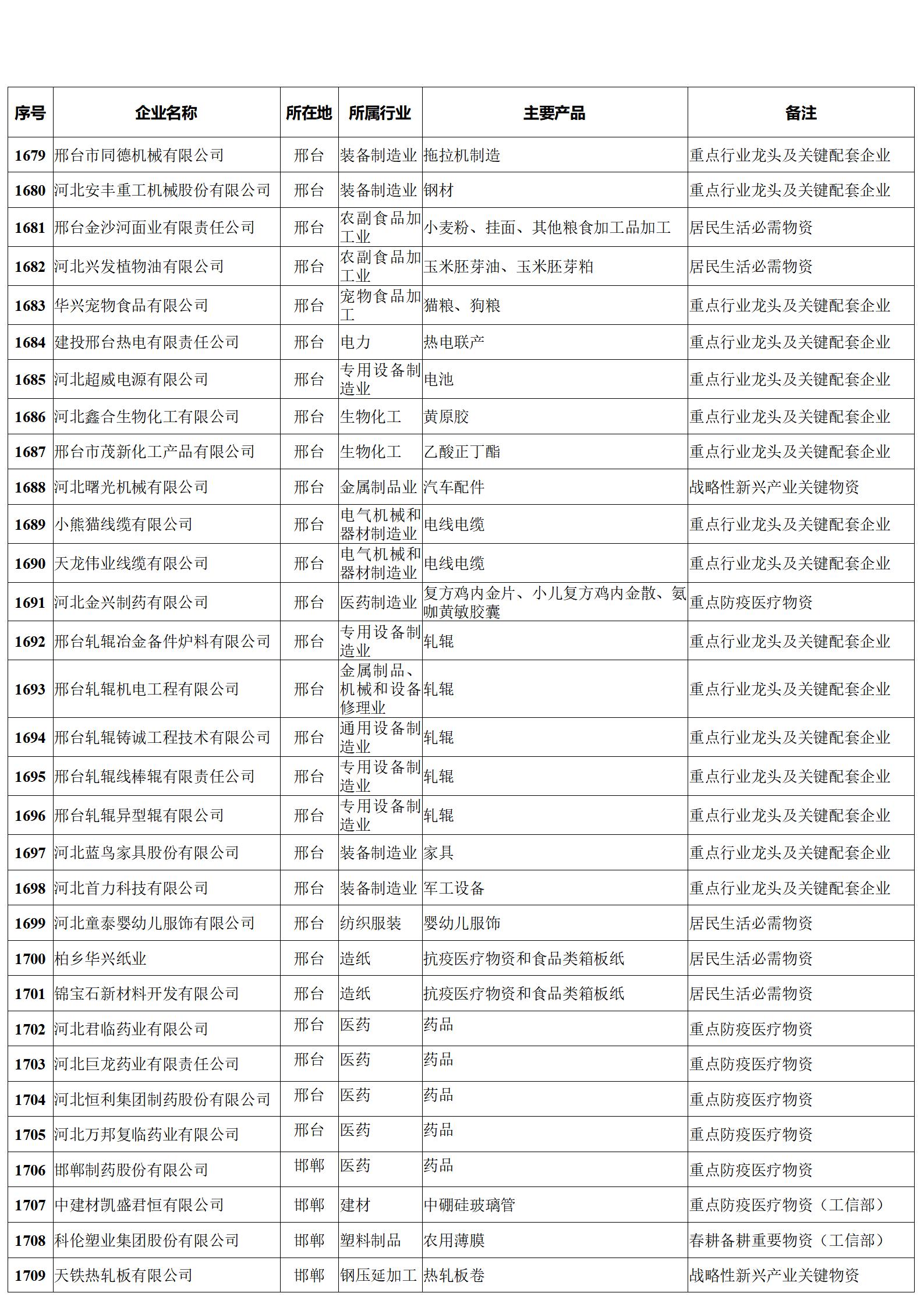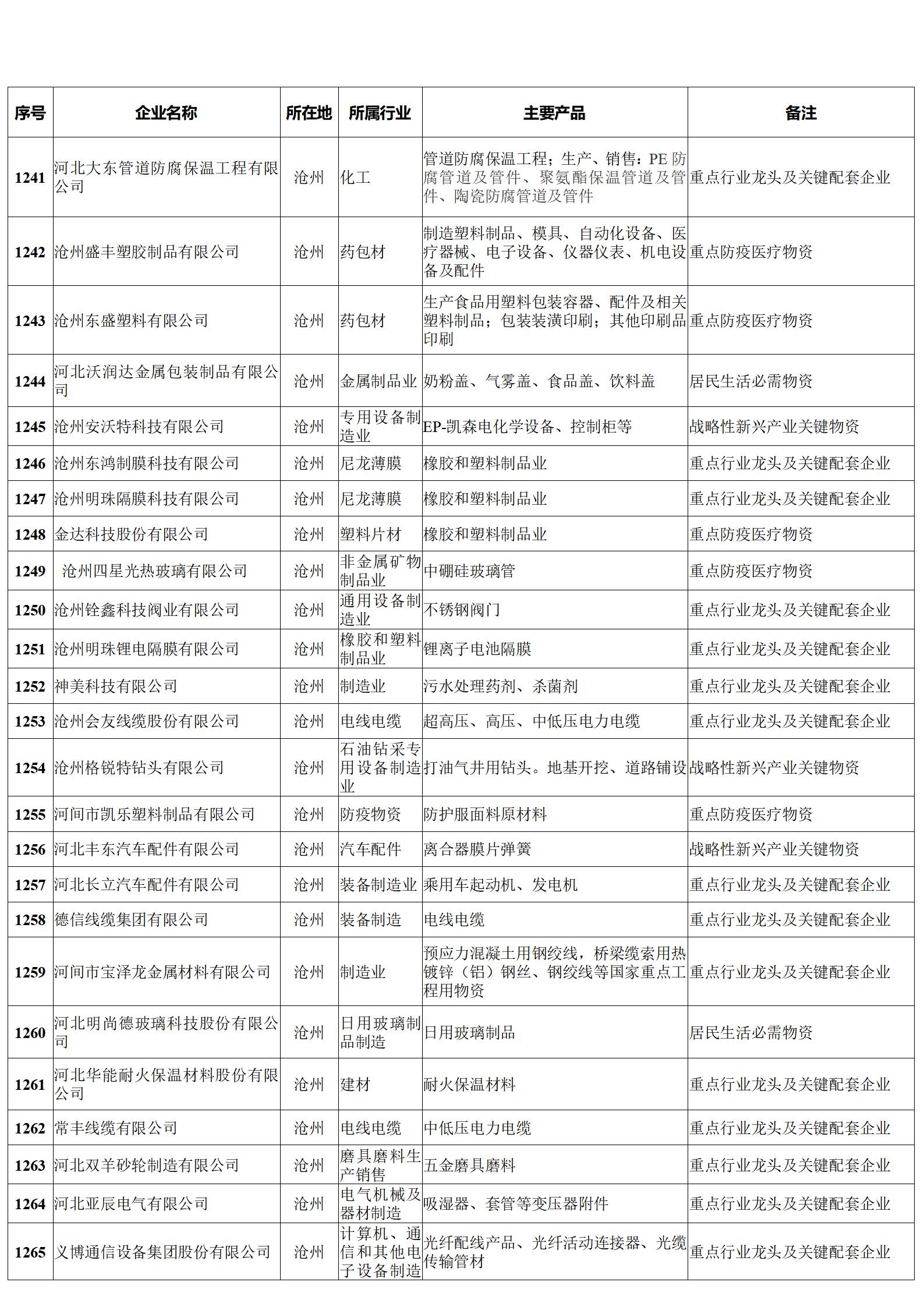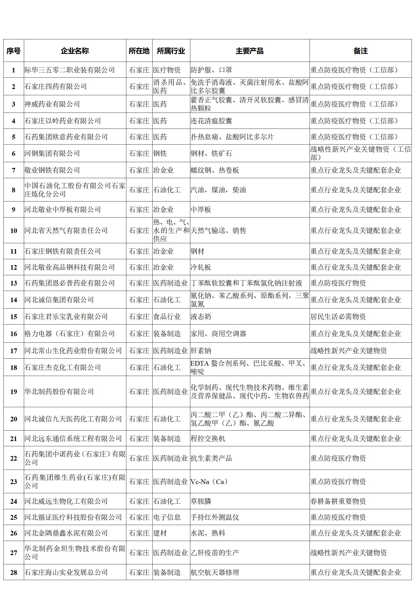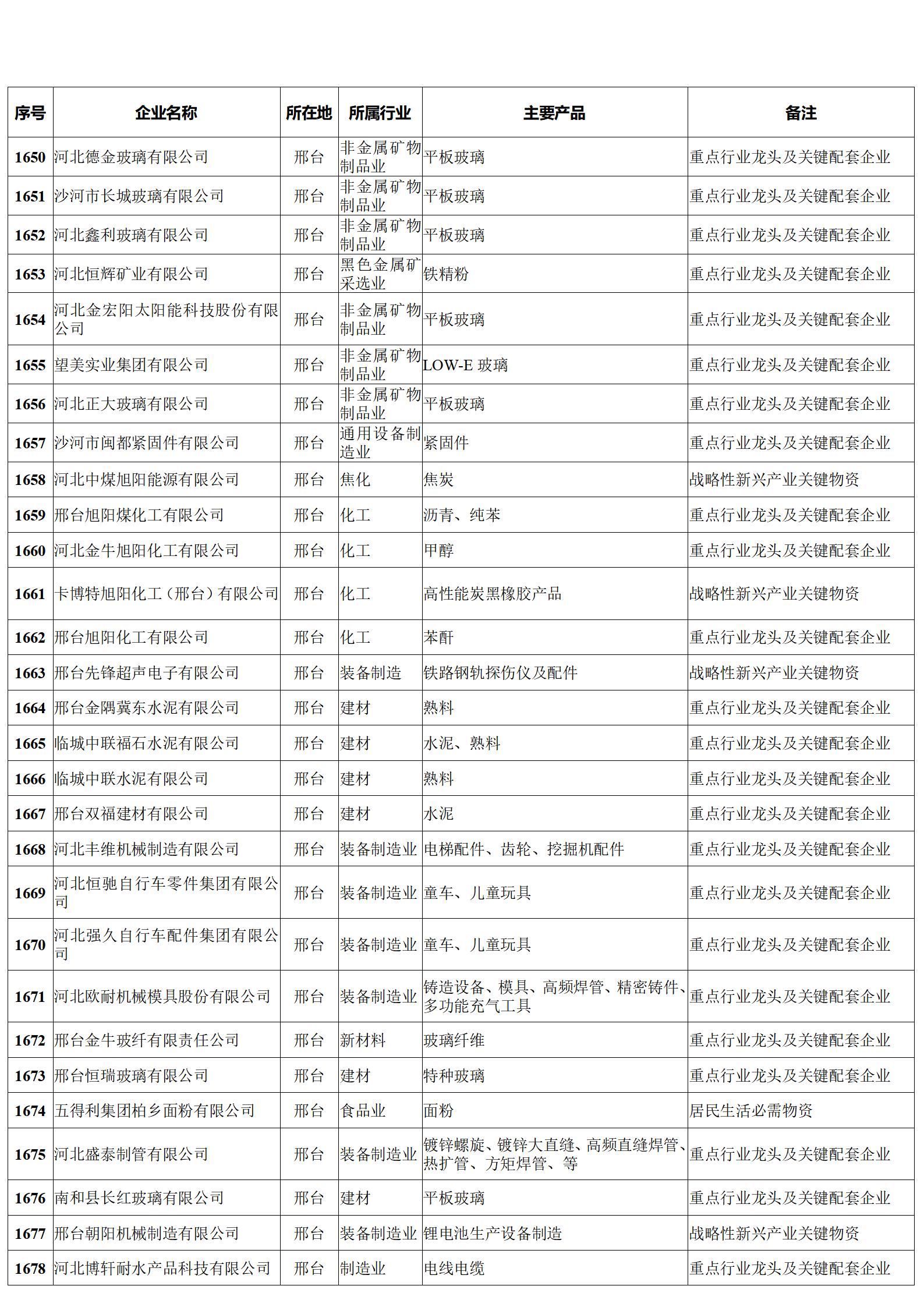 河北省重點產(chǎn)業(yè)鏈供應鏈“白名單”企業(yè)