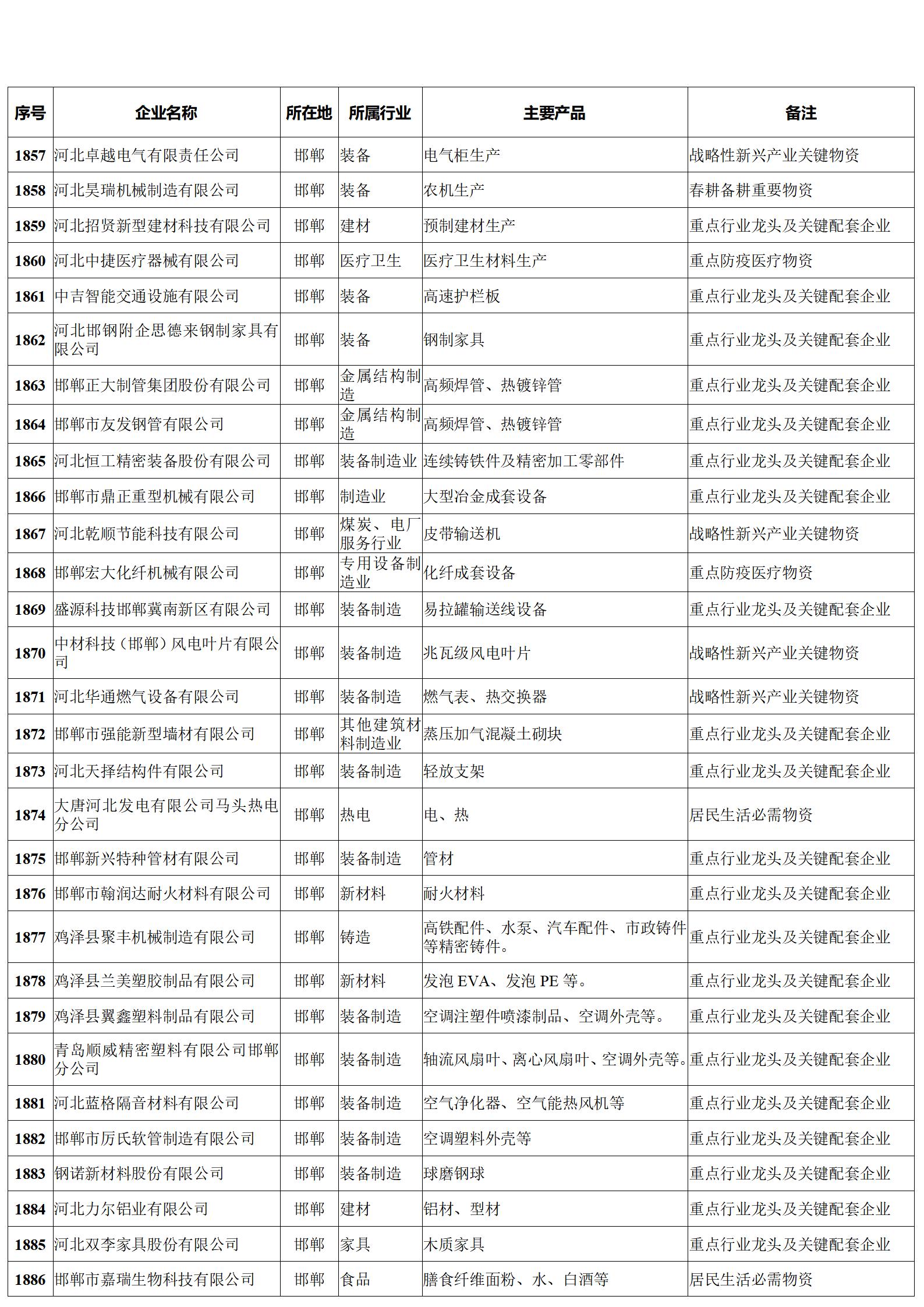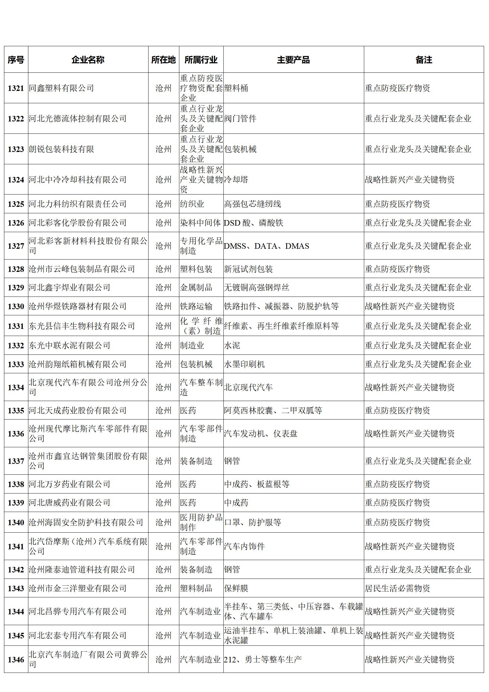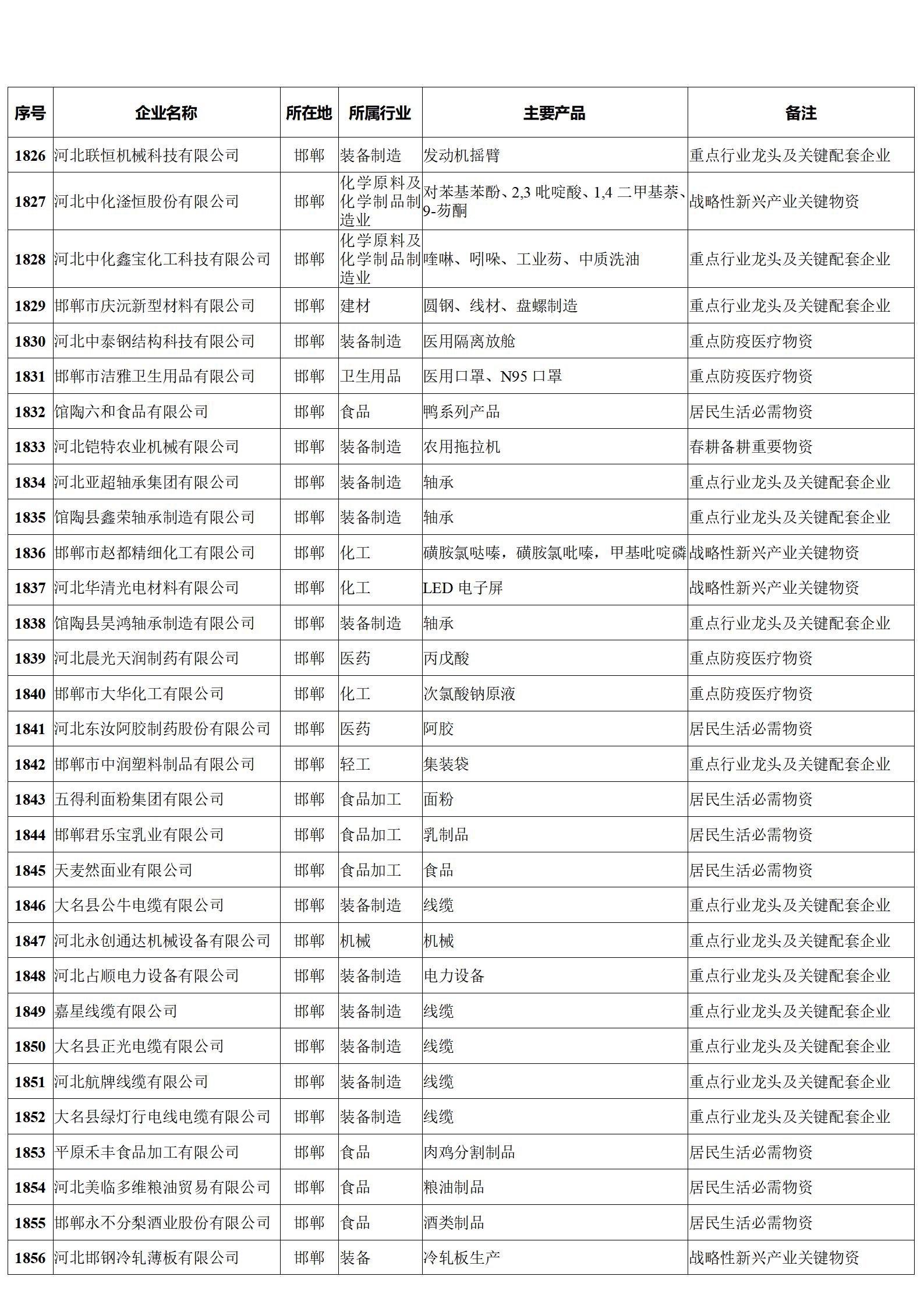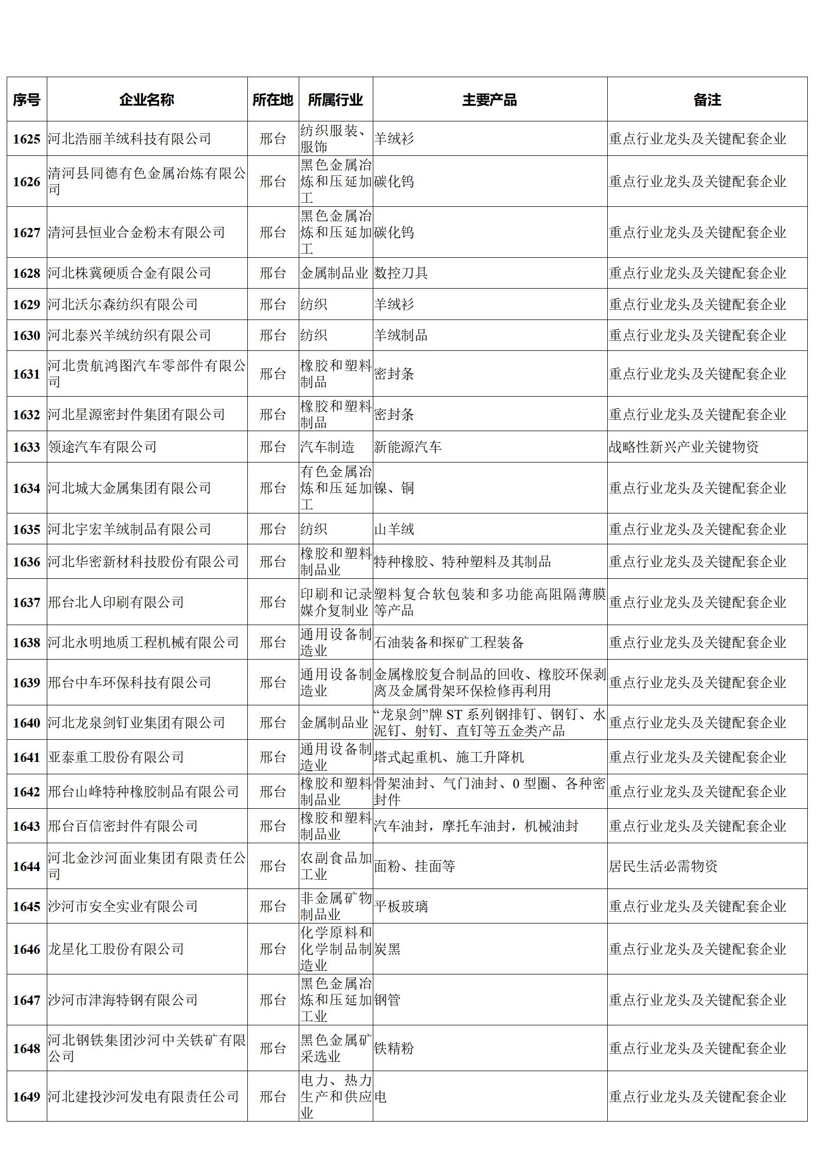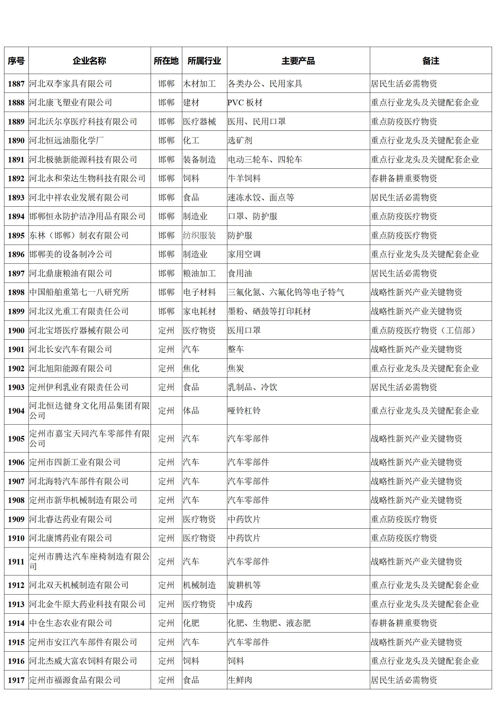 河北省重點產(chǎn)業(yè)鏈供應鏈“白名單”企業(yè)