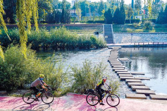 改造后的涼水河豐臺(tái)段沿岸綠化與慢行系統(tǒng)融合,為市民休閑騎行增添更多樣的景觀體驗(yàn)。 本報(bào)記者 鄧偉攝