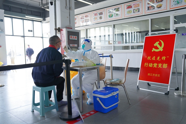 核酸檢測團隊走進(jìn)制造業(yè)企業(yè)。濱江開發(fā)區(qū)供圖