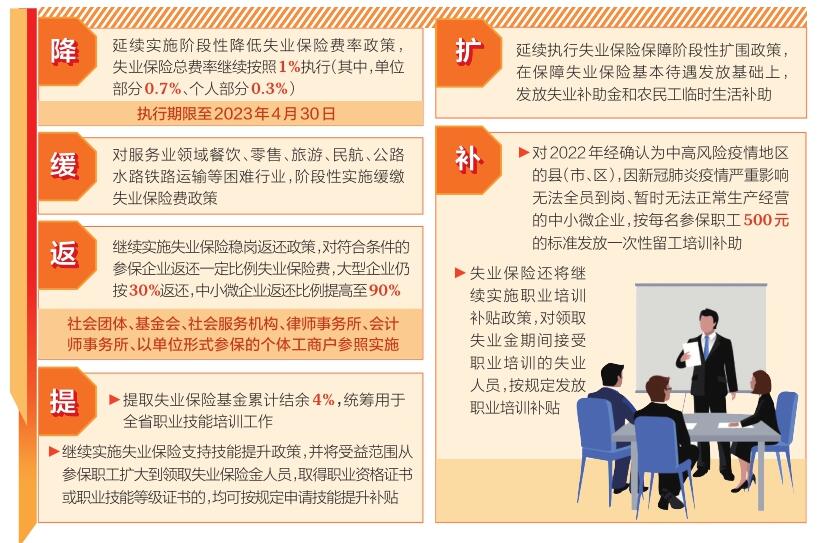 這次失業(yè)保險新政重點(diǎn)圍繞“降、緩、返、提、擴(kuò)、補(bǔ)”等方面(詳細(xì)內(nèi)容見下圖)推出穩(wěn)崗位提技能防失業(yè)舉措。(記者高建華)