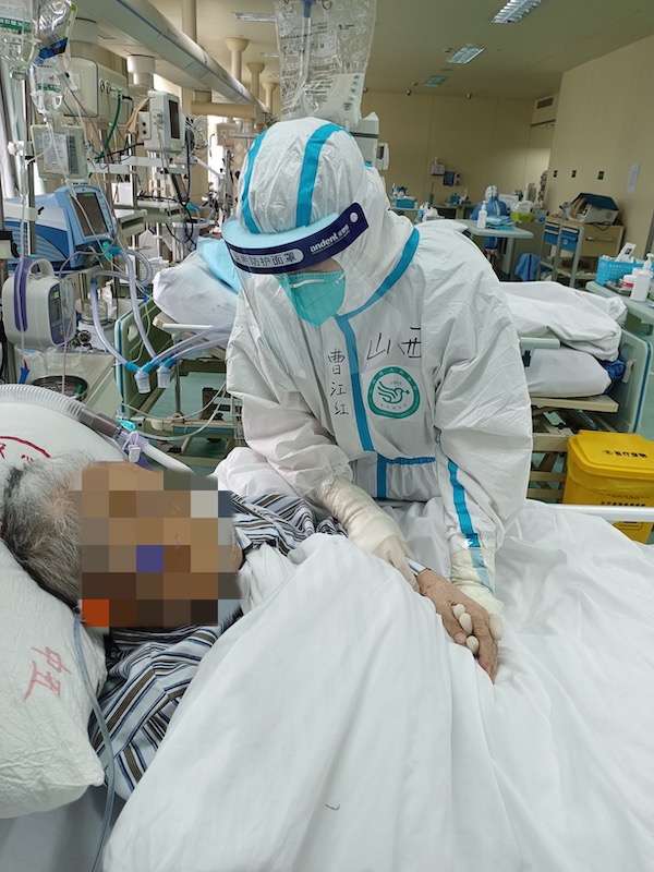 “曹醫(yī)生,我是不是能出重癥了?”張先生期待地看著醫(yī)生曹江紅,他是醫(yī)療二隊在支援該院ICU后收治的第一例重癥患者。由于糖尿病導(dǎo)致肝膿腫進(jìn)而出現(xiàn)感染性休克危及生命,從普通病房轉(zhuǎn)入ICU。