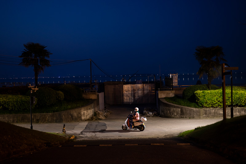 天還未亮,母親騎電瓶車上班。孫楊洋攝